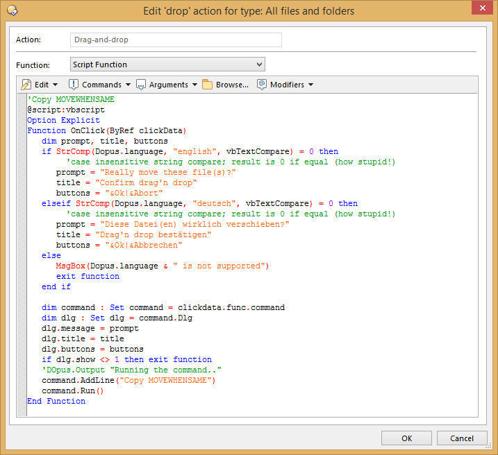 elseif StrComp(Dopus.language, "deutsch", vbTextCompare) = 0 then