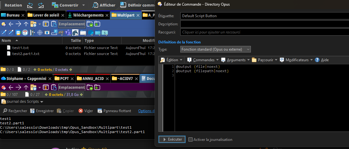 There is indeed a difference between how {file|noext} and {filepath|noext} handle multi-part extensions. That probably wasn't intentional, but if we change it now it might break people's buttons, so I am not sure if we will. But explicit noext_m and noext_nom or something might make sense.