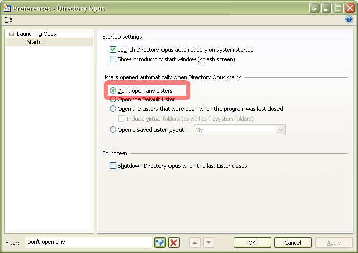 What this means is that the first time you launch dopus.exe - no listers will open. I'd say that if you ARE launching Opus on Windows startup - then you want this set to not open any listers. If you're NOT launching Opus on Windows startup, then I'd imagine most people would want to 'change' this option to open a lister of 'some' sort based on the options shown above...