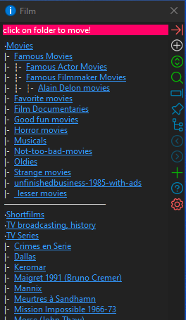 - markup text, showing “hyperlinks” to click on: this was the original implementation. It is dense and presents well, but slows down quickly when there’s lots of folders.