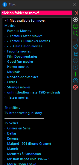 In this case, I did not even specify a STARTFOL, which means: the dialog shows the current folder. Even that is useful, as you may often wish to move files to subfolders of your current directory. To move files to other locations, you need to use a button with a STARTFOL argument - and the dialog will still pick up file(s) you selected in an entirely different location - which makes the tool versatile.