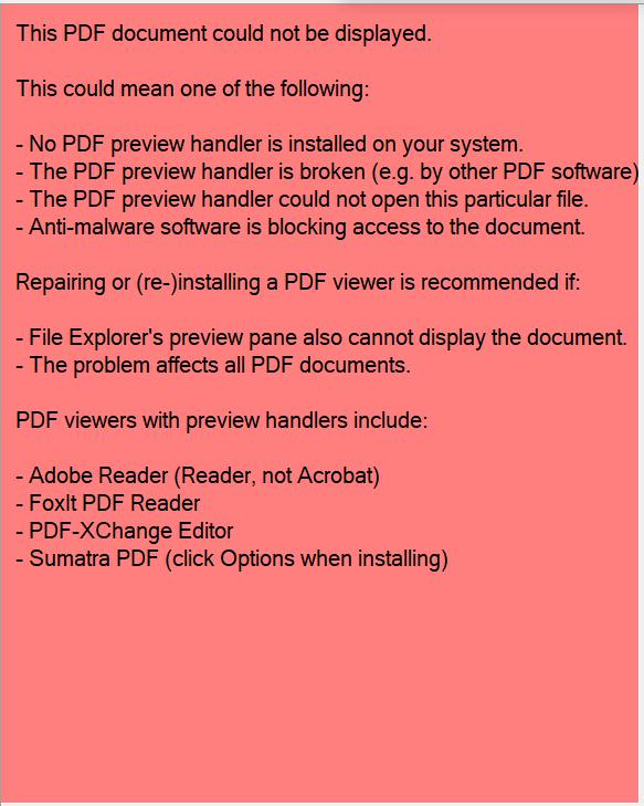 I have used DO for many years and versions without a problem but now the viewer does not work with pdf files. Instead I get a red window in the view window saying, "This pdf document could not be displayed" The viewer continues to work well with other sorts of files such as png, docx or xlsx.