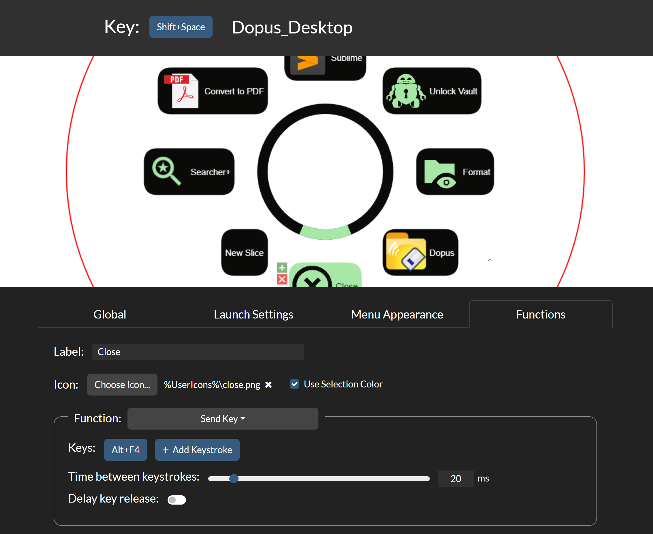 Not exactly what you want but you could create an autohotpie menu. The close option there, would apply to any program not just Dopus. Or just use autohotkey to create a hotkey for alt+f4.