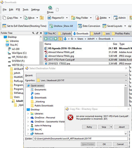 Hi: since upgrading to DOpus12 12.2 x64 (build 6109) I have encountered errors when moving/copying, when I use favorites to specify the target directory.