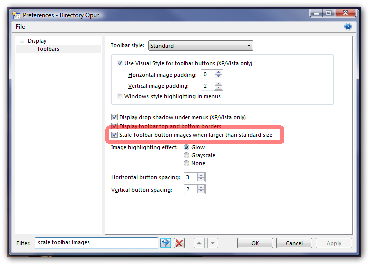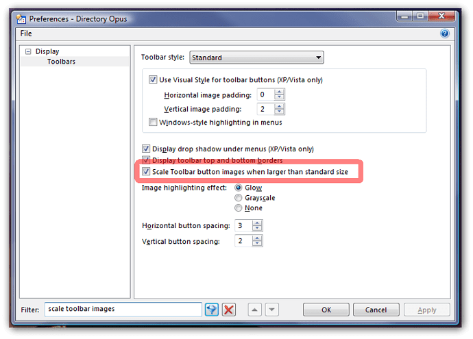 While the scaling option works, if you have a lot of large images you are using as icons it would probably be better if you manually resized them. Otherwise Opus is doing a lot of work (and using a lot more memory) every time is loads the toolbars.