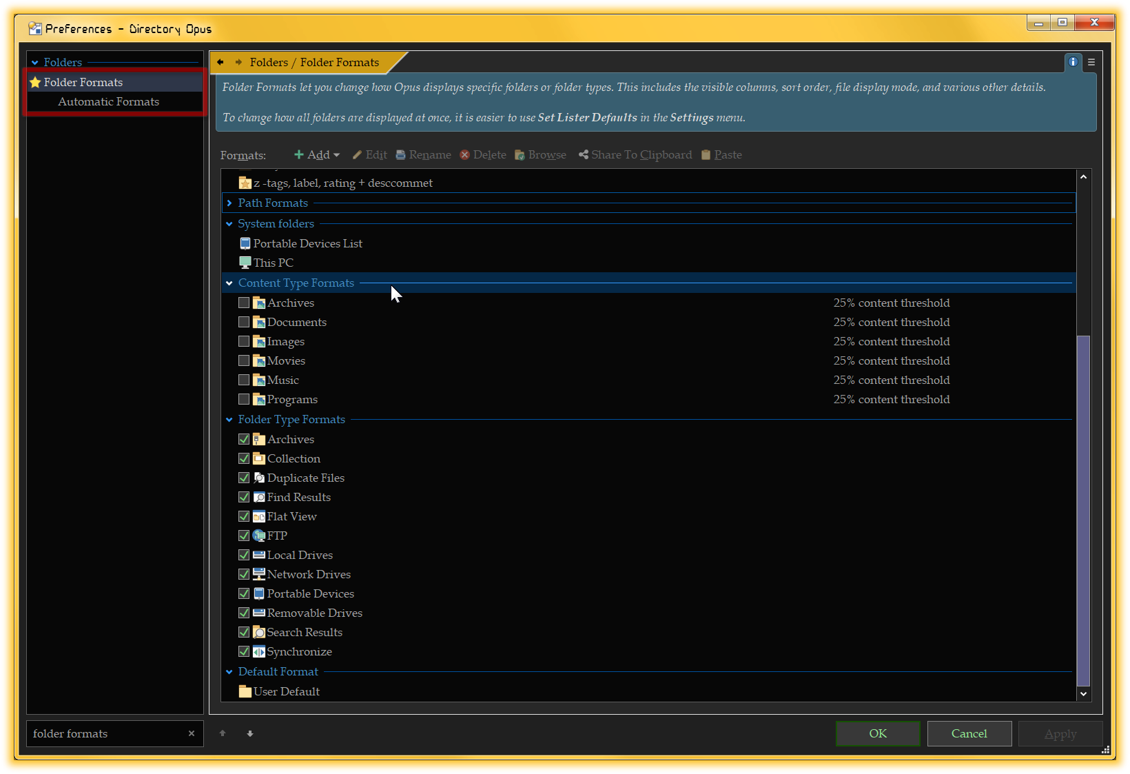 Check the Content Type Formats in Prefs > Automatic Folder Formats