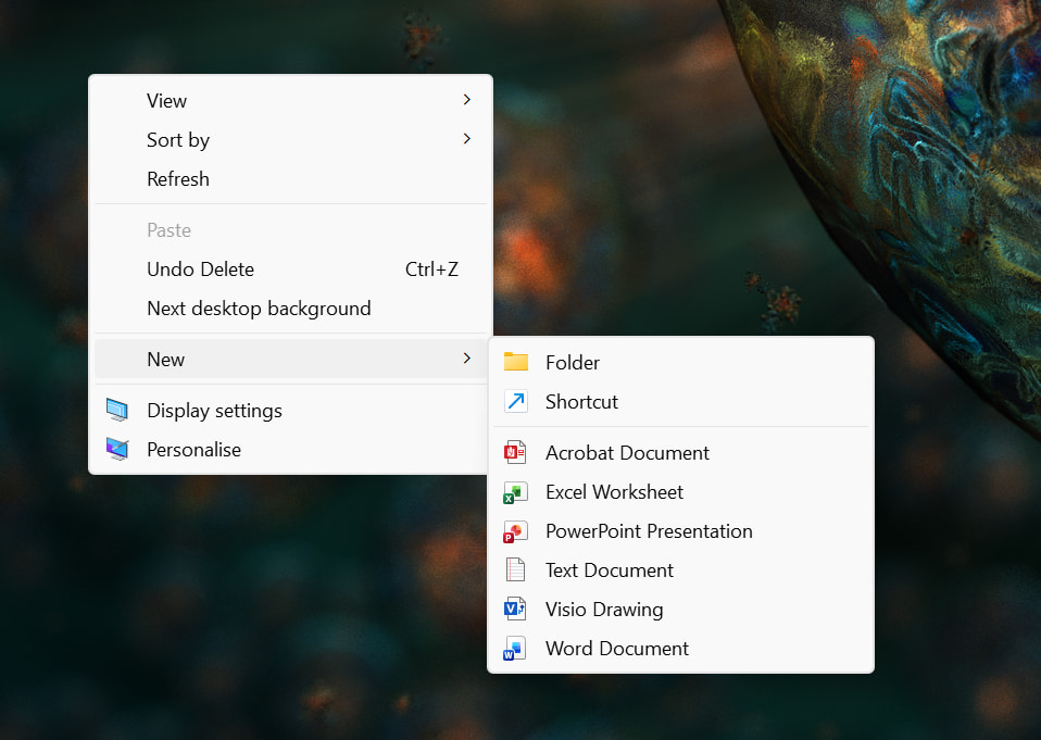 Hello, I have tried all sorts to remove the "Bitmap Image" item under the Directory Opus "New" context menu (right click on folder background) because I do not wish it to be there. It is not present in Explorer when I right click so do not understand why it is different and whether I can change this??