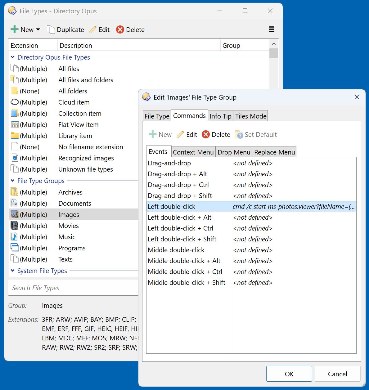 when i double click a jpg image file in opus and i have set default operation to use windows "fotos" app the small handles to click next and previous image in a folder is mossing. If i do the same in microsoft native file explorer they are there and "fotos" app works like supposed.