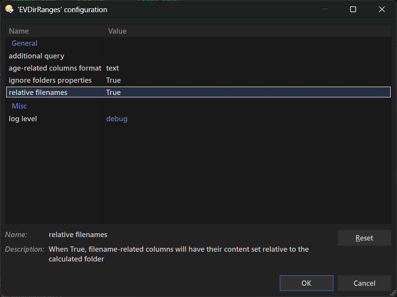 relative filenames : When True, filename-related columns will have their content set relative to the calculated folder