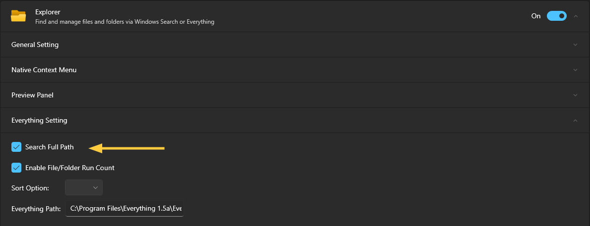 Just to clarify my previous reply. Flow Launcher also has Everything integration. It uses the Everything SDK, which includes the Everything.dll. Its settings page includes a toggle named Search Full Path, which corresponds to the Match Path setting in voidtools' Everything.