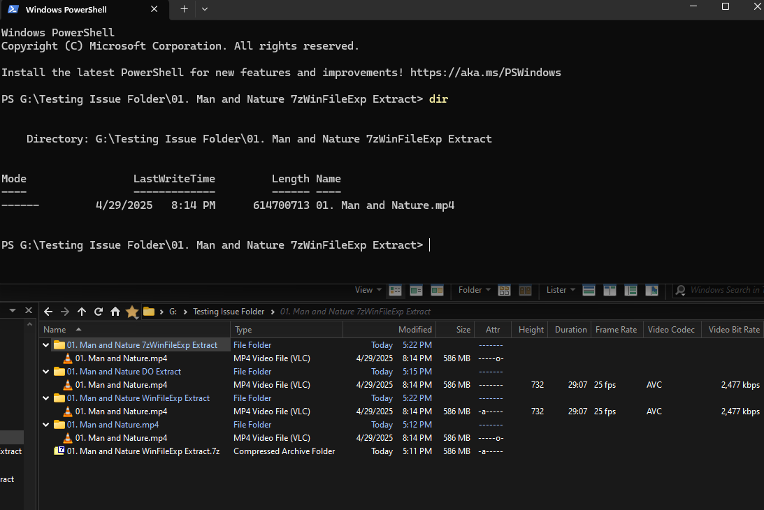 Top is windows file explorer, right is the file properties, and bottom is Directory Opus where the data isn't showing.