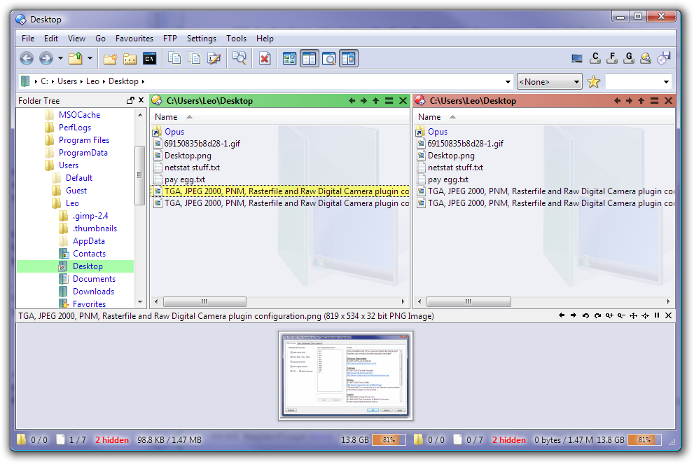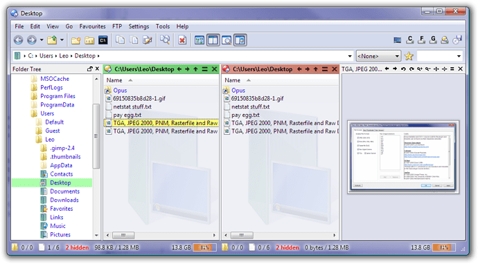 I've started looking into Dopus a bit, and I was wondering if it was possible to place a file preview window under the filetree, when using one filetree on the left and two folder panes right of that. I like seeing thumbnail images of the file I currently select, but I don't want to use the tooltip function all the time, nor do I like the thumbnail view (I always use details).