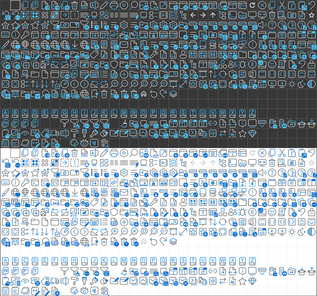 I created several icon sets in the Windows 11 "Fluent" style. All icons were created at 22 px (pixel perfect) and 32 px (pixel perfect) except "FLUENT_UI26_THIN" created at 22 px (pixel perfect) and 26 px (pixel perfect).