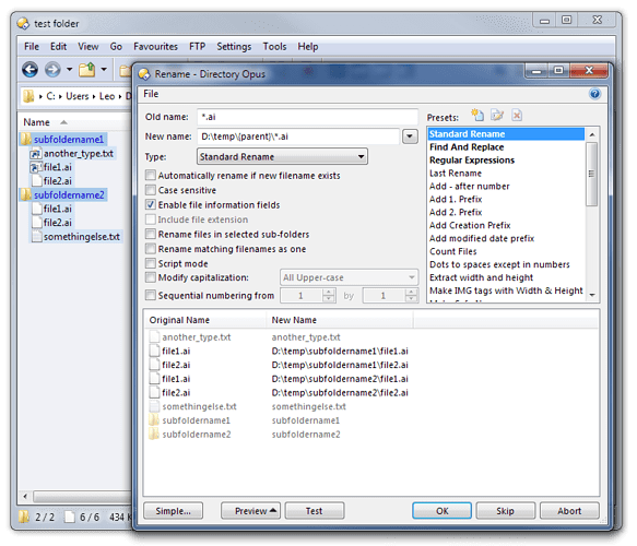 Check that the Preview display in the Rename window shows the files will be moved/renamed the way you expect before clicking OK!