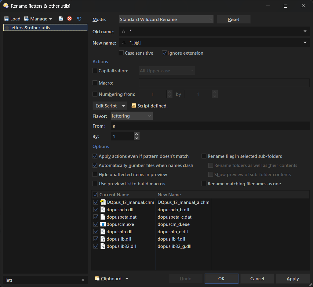 As shown in the attached image, I would like to insert alphabets sequentially into file or folder names using the Rename function.