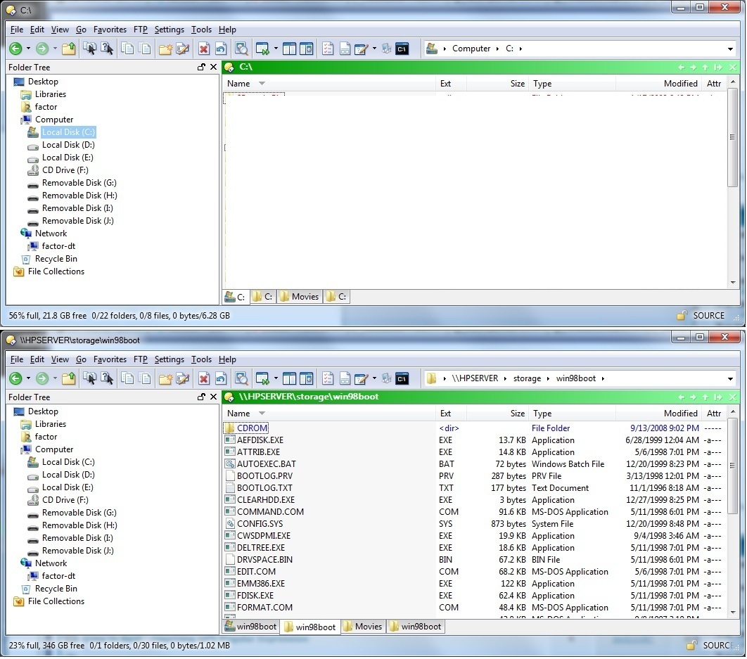 See the attached jpg which shows the lister in 2 different states (this is the same lister window, just captured twice). I have 4 tabs open at different locations. Tab 0 is at c:\ and tab 1 is at \hpserver\storage\win98boot. When I click on tab 0 and force a name refresh (by clicking on d:\ then back to c:), tabs 0,1 and 3 all change their name to c: even though 1 and 3 are located elsewhere. When I click on tab 1 (and force a name refresh again), the same tabs (0, 1 and 3) all change to win98boot - even though tab 0 is still located at c:.