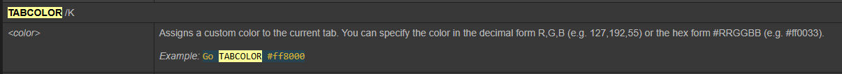 Ah, thatās on me. I misunderstood how the TABCOLOR parameter works. After reading the documentation, I assumed it changed the tabās background color rather than adding a top edge.