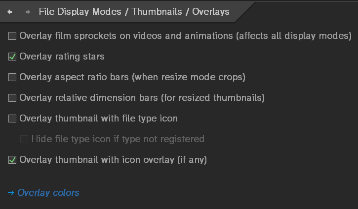 …rather than being overlaid on a thumbnail or icon. That “Overlay thumbnail with icon overlay (if any)” option in your picture is really meant for Windows shell overlays, such as from cloud servers, for the reason above.