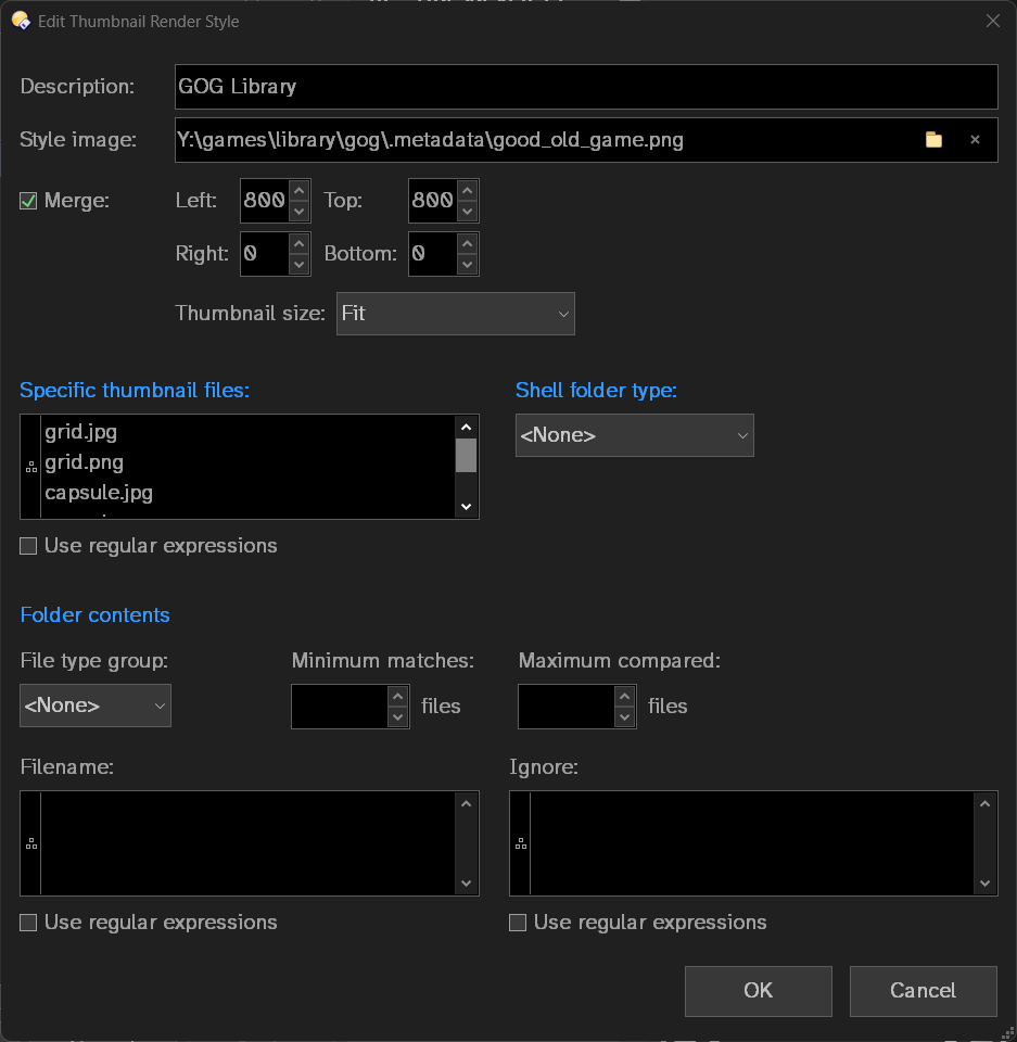 This Thumbnail Style should be only applied to folders with the “Good Old Game” label (is that possible). As it stands, it is triggered by the folder having a Specific Thumbnail File in it.