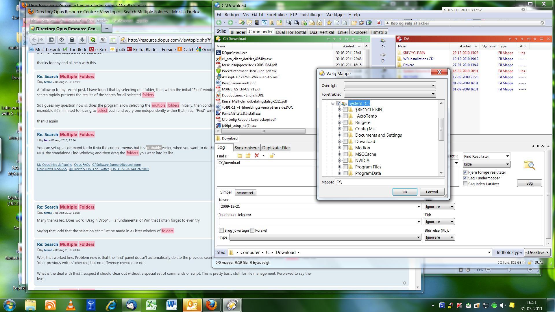 If you want to search C and all folders below it, just select C and then, back in the Find Panel, make sure "Search inside subfolders" ("Sog i undermapper" in your screenshot) is turned on. There's no need to have everything below C ticked in the dialog as well (that would just add a huge mess of folders into the "Find in" list).