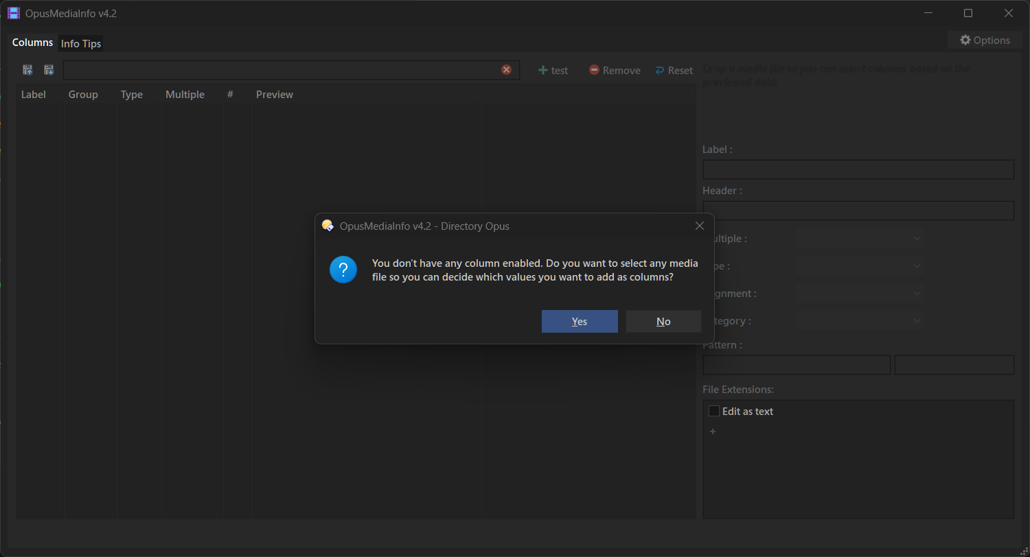 OpusMediaInfo is a script add‑in for Directory Opus that extends the default multimedia columns, letting you pull in any MediaInfo value right into Opus. What really sets it apart is its intuitive UI. No more manual edits just to add some columns. Just preview and pick exactly the data you need, then choose how it'll appear in Opus.