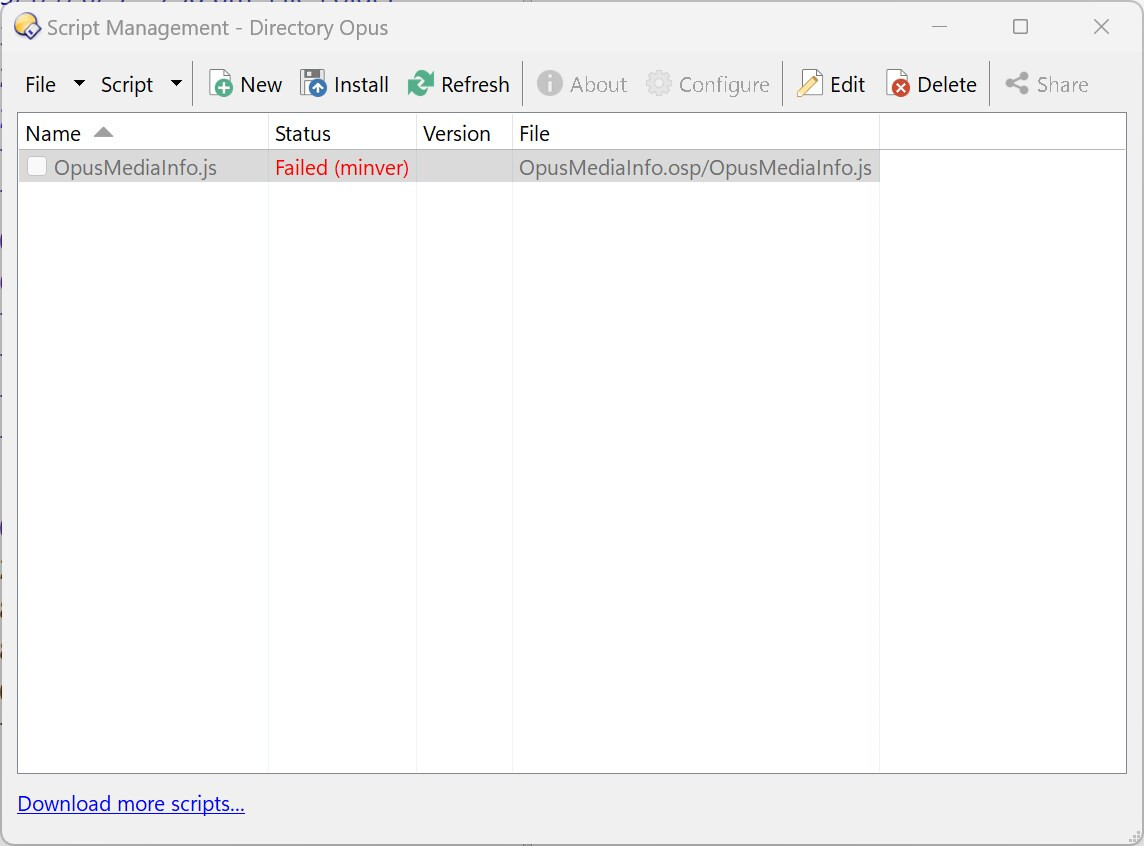 Sorry I really am a noob but I installed the DOpus-Scripting-Extensions by @PolarGoose and then installed v4.0 of the script, but under script manager I get this error: