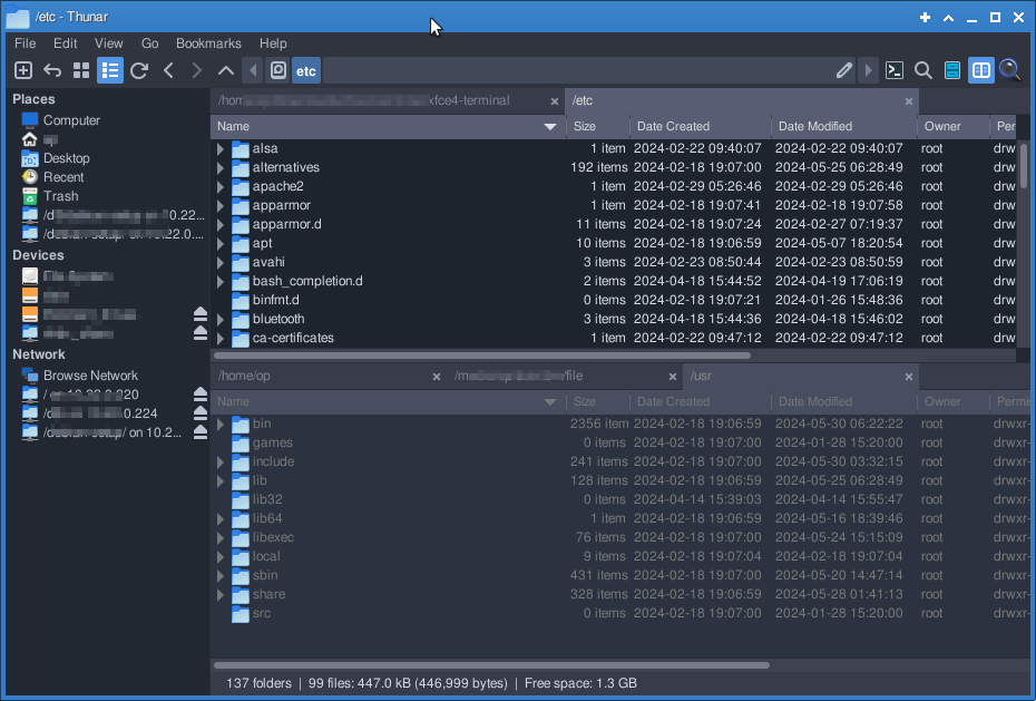 You probably also need to hack the CSS for Thunar to be able to make use of the two panels successfully, since which one has focus is not distinguishable with the default settings, uurgs! It's a lot of work and there are basically no CSS classes inside the Thunar executable to make life easy.