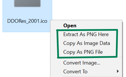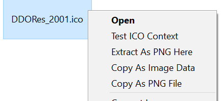 I have some DO standard function context menu entries that I added a while back, which show when right clicking .ico files.