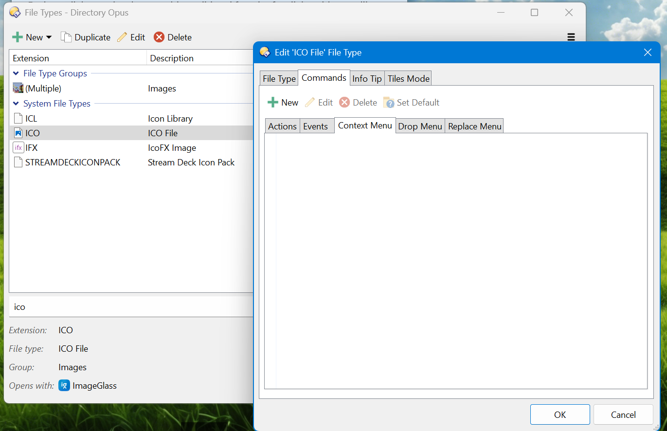 Only that new command shows in the ICO File menu's Context Menu tab, but now both sets of commands show in the context menu when right clicking an ico file: