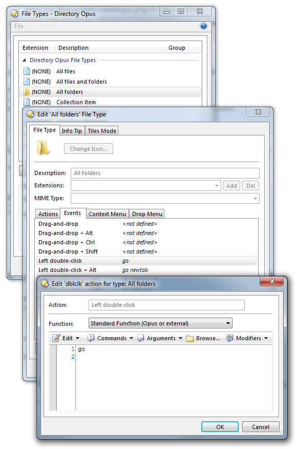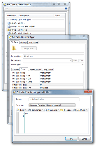 Go to Settings > File Types and then All Folders -> Events and make sure the left double-click event runs the Go command:
