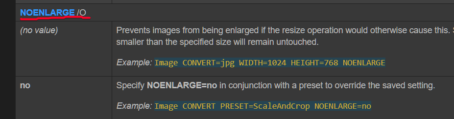 The correct command was Image WIDTH=1000 PRESERVEASPECTRATIO NOENLARGE HERE