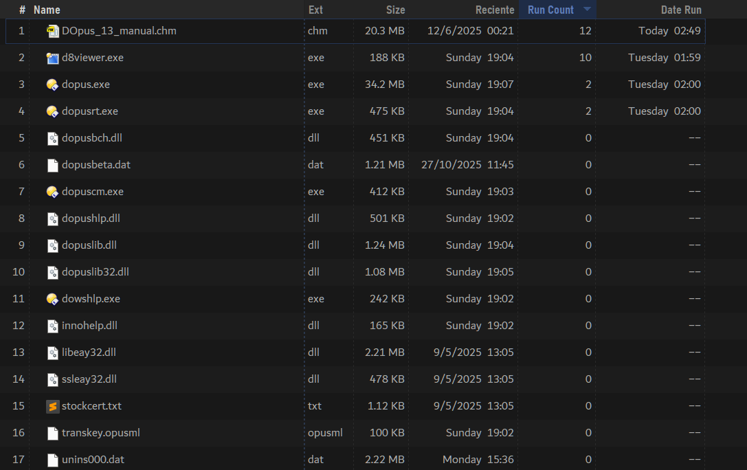 RunCount is a script add-in command and column for Directory Opus that helps you to fully integrate Everything's (Voidtools) run count and date run properties into Opus.