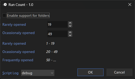 RunCountsupports keeping run count values when items are renamed via Opus. Report any error you encounter. - I made this add-in using the latest Everything alpha build, so there's no guarantee it'll work with v1.4.x.