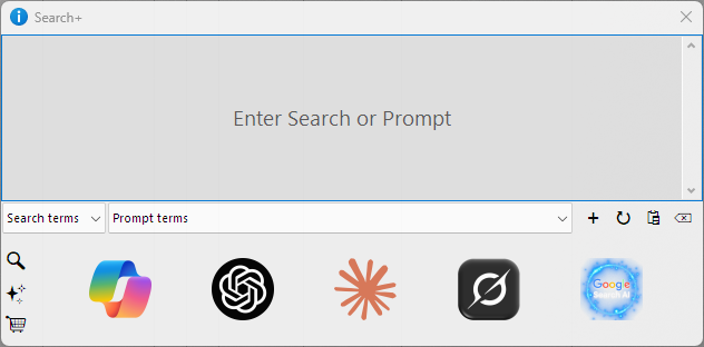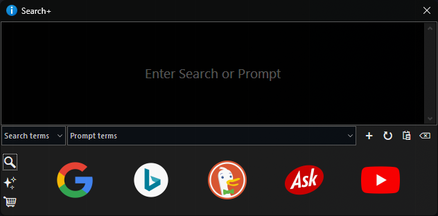 A simple detached dialog that launches a Search Engine or A.I. Chatbot or Online Shop in your browser with your search term or prompt