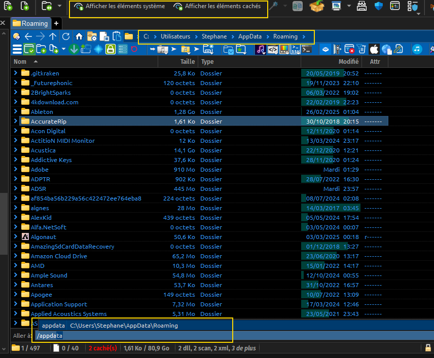 And for the alias: With both Show Hidden & Show System disabled, if I type /appdata, it does get me to the appdata roaming folder.