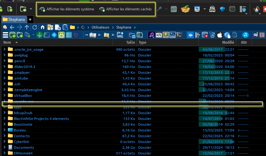 Hide hidden files: This option causes Opus to hide files and folders that have H attribute set and do not have the S attribute set. You can toggle this option quickly via the Show Hidden Files item in the Folder Options menu on the Menu toolbar.