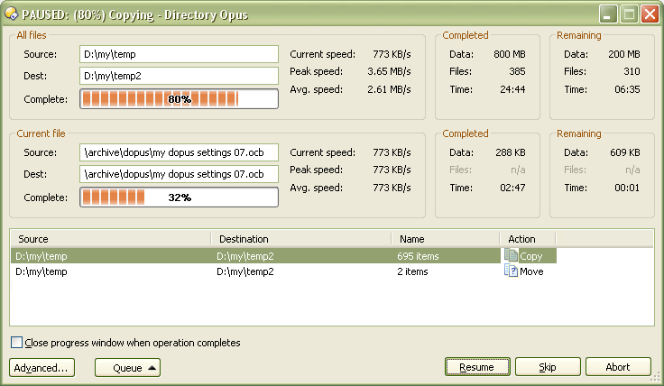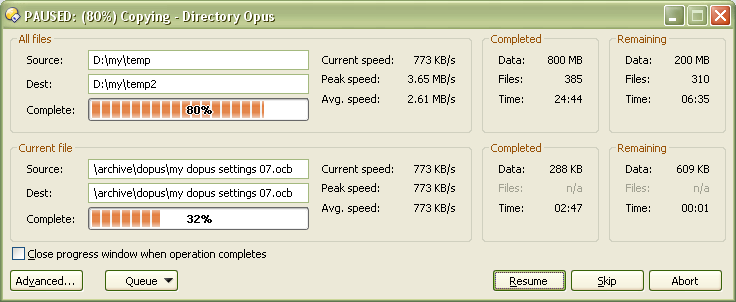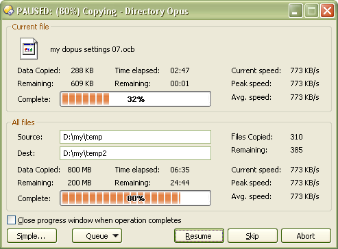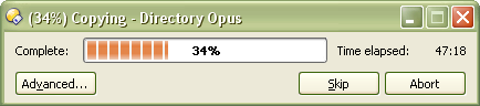 What is the "skip" button for while I don't know the name of file currently being copied? Also, elements like "complete: " are useless (what else can be shown by bar in progress window?).