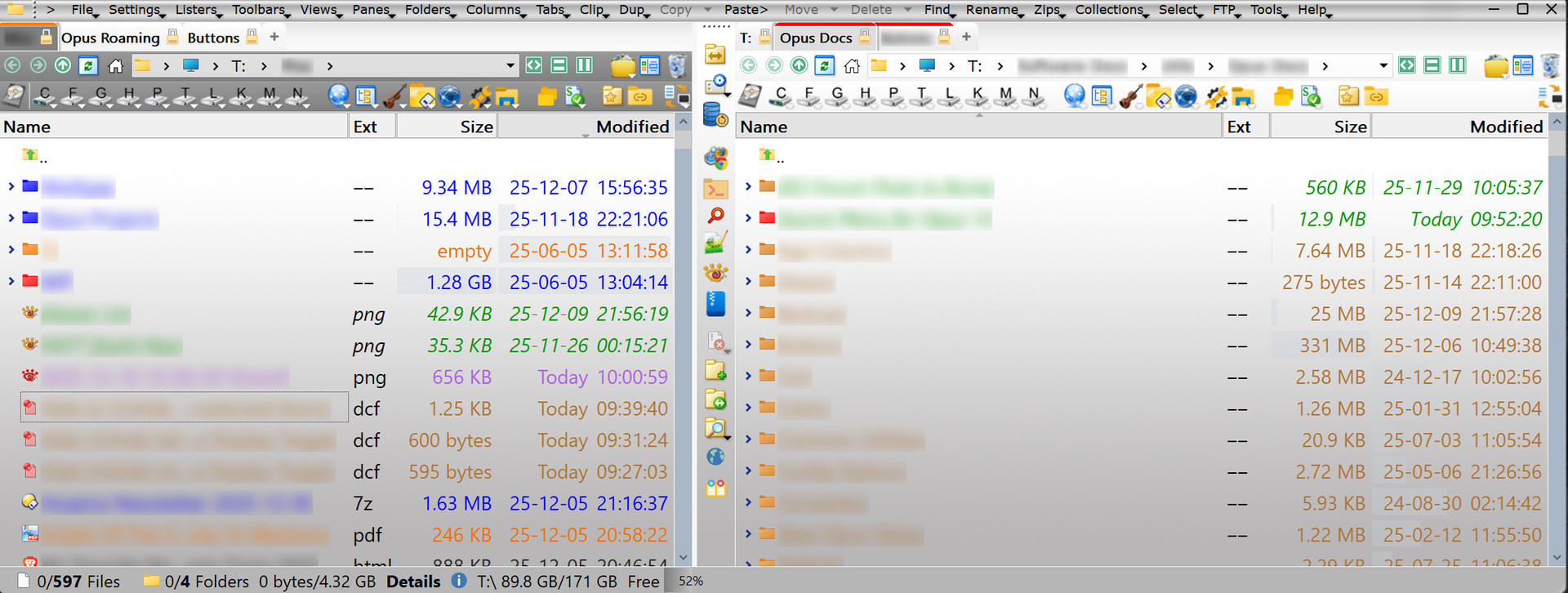 It is also my version of how such a set of toolbars should be structured. As such, it is not based on, nor does it look like, the default Opus configuration which mimics File Explorer in the initial default Directory Opus settings. Instead, it has 23 categories of Opus features: File, Settings, Listers, Toolbars, Views, Panes, Folders, Columns, Tabs, Clipboard, Duplicates, Copy, Paste, Move, Delete, Find, Rename, Zip, Collections, Select, FTP, Tools, and Help.