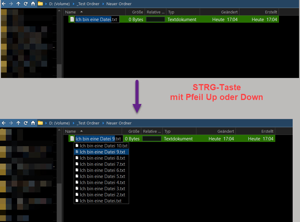 When I rename a file and press the STRG-key with down arrow, a popup appears with the last file names. Can I switch this off or move it to another key?