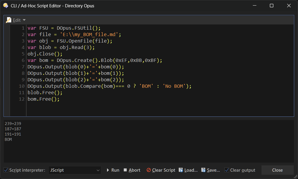 DOpus.Output('File Encoding: ' + encoding + '\nIs ANSI: ' + (encoding == sysEnc ? "Yes" : "No"));