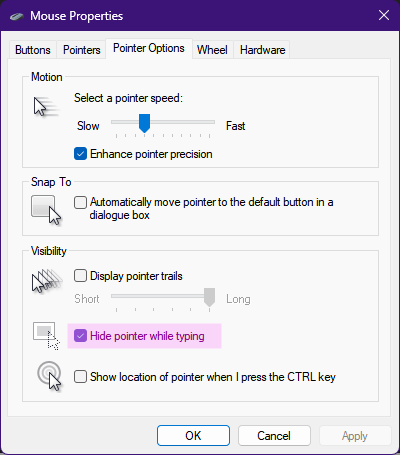 Windows has the legacy ‘Mouse Control Panel’, in the ‘Pointer Options’ Tab is a setting: