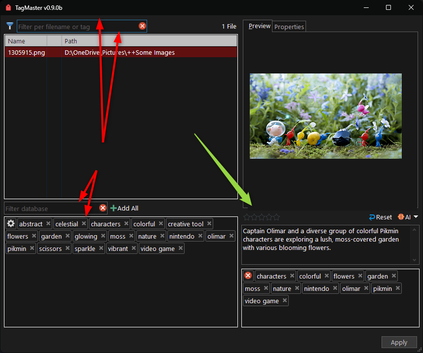 In AUTOTAG mode, you can set the files you want to handle automatically using AI models. More details in the Autotag argument section.