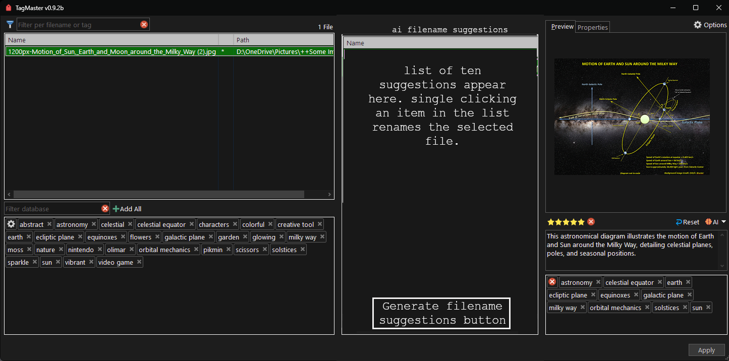 AUTOTAG mode can be accessed from FULL mode when using the ai option (on the selected file), or as a standalone dialog that supports multiple files, invoked with the AUTOTAG argument.