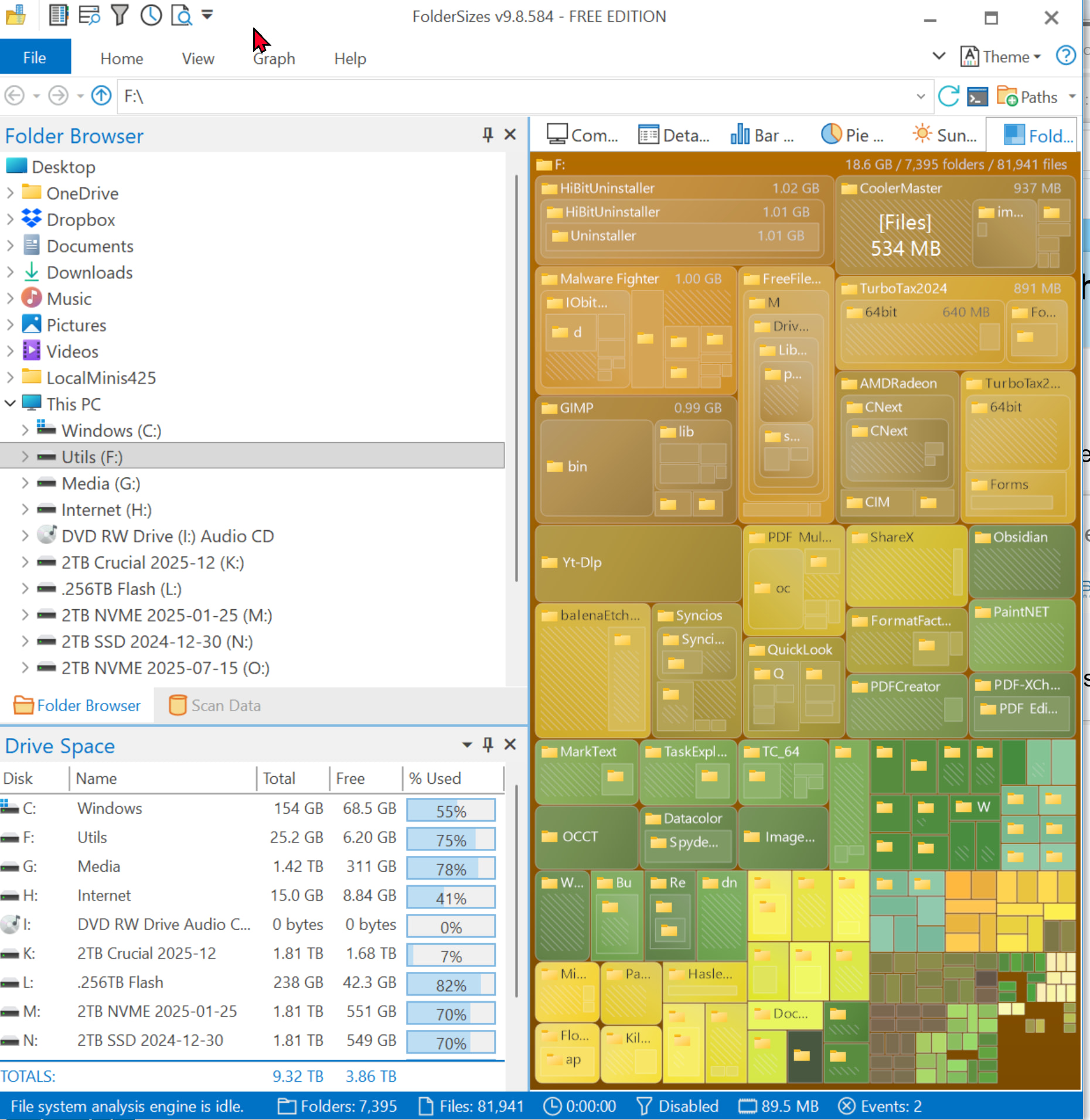 Is there a way to easily get a list of which folders take up the most space. Folders and subfolders. I know how to get it to show under say movies that begin with a t as the name of the folder but i want it to look across all the other folders such as s movies, r movies etc and show what takes up the most space so it would show say t movies but also how the west was won, annie get your gun so be it root folder or any level of subfolder if it took up alot of spce. Thanksf