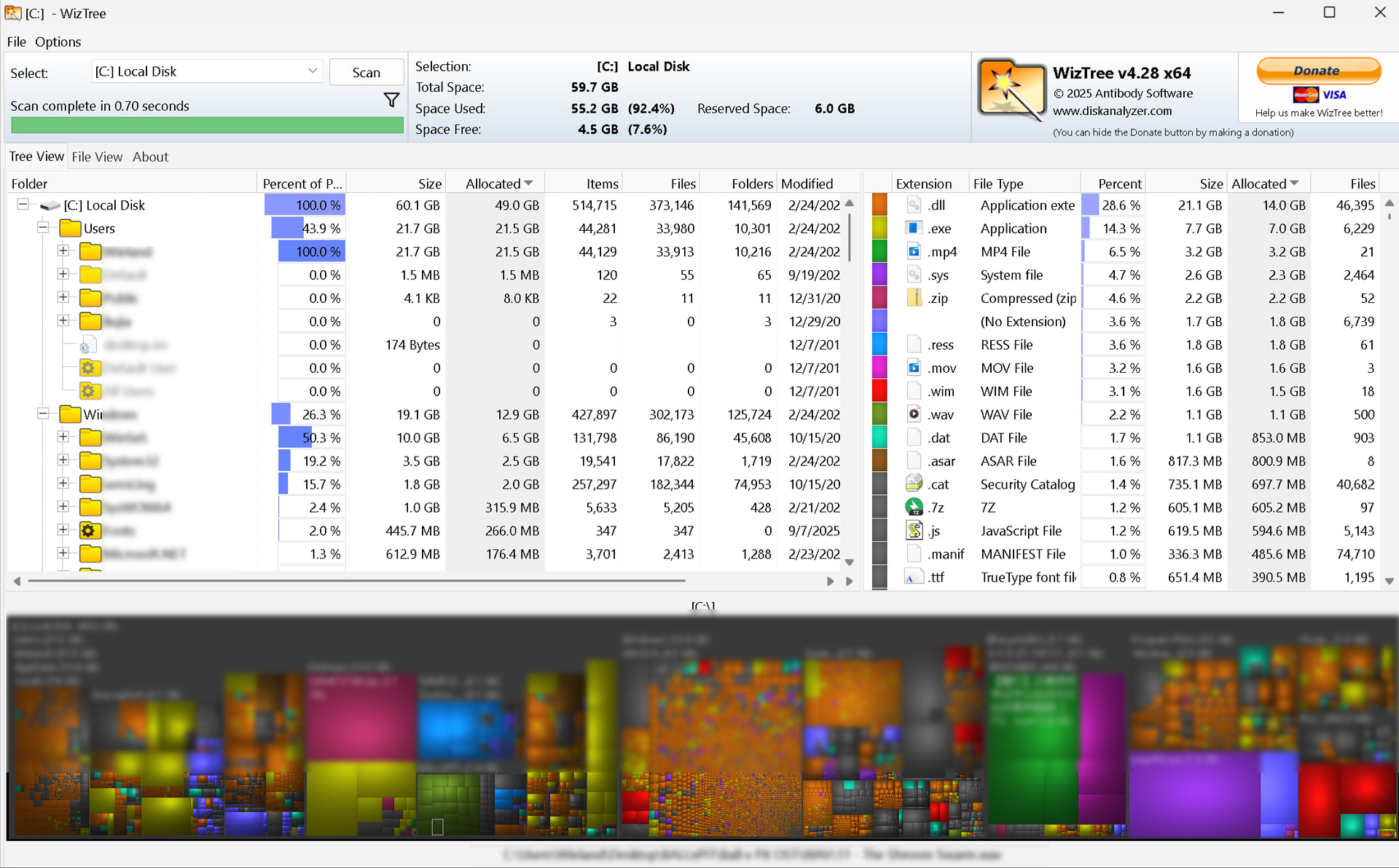 Instead of minutes to scan a "decent" folder tree, WizTree will only use some seconds and boom, bring up the box-layout and everything else these kind of tools provide. I never touched WinDirStat since I know WizTree.