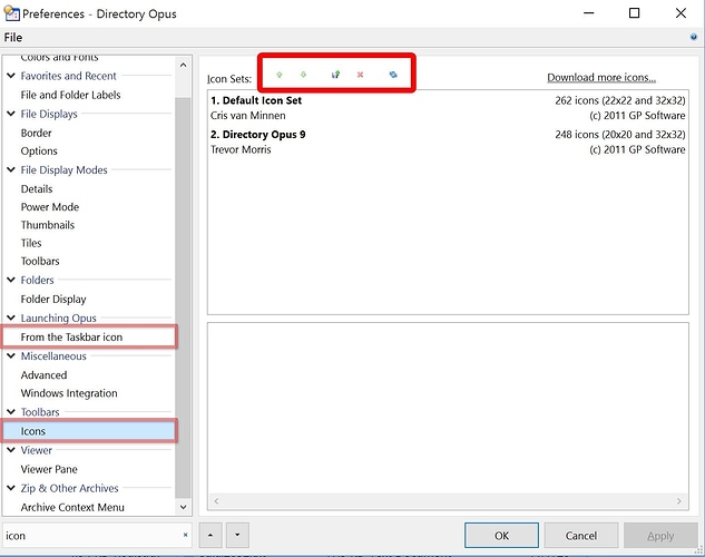 Another example in the preferences dialog, I put a red rectangle around the problematic icons: