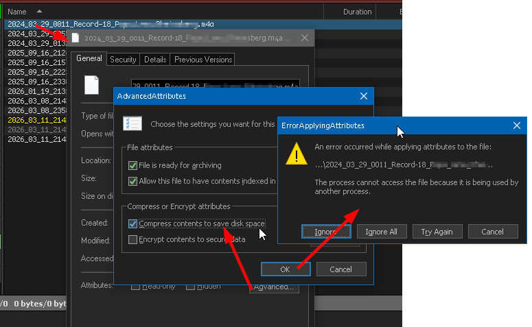 Regarding the SetAttr command, I actually cannot remember, but I think it also does not matter because if you "work around" SetAttr, the locking problem is not solved at all. I will run "ffmpeg.exe" tomorrow and up with a problematic lock anyway, right? I just wanted to "enrich" the problem situation with some more examples.. o)