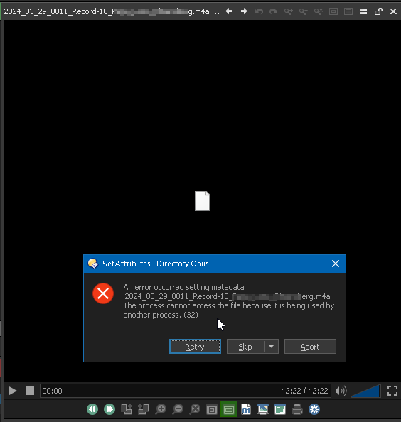 The DO preview is not a generic media player, which probably does not expect me to modify a file while it is playing. The DO preview is different, it should expect me to change the file with first priority, because I am in Directory Opus - a tool to manage and manipulate files and their meta data.
