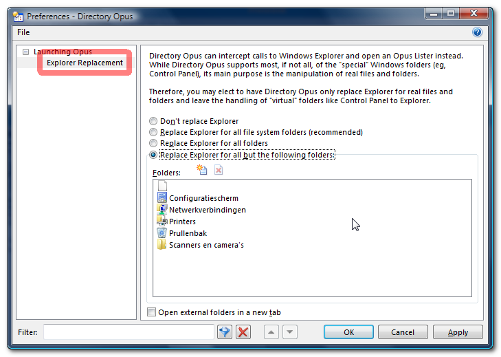 Windows Virtual PC (Win7 only) opus a 'special explorer window which has some extra controls (e.g. create new virtual pc) which you can't access from the opus lister (which always opens instead). It'd be nice if it ignored this folder by default (much like it does for control panel for example).